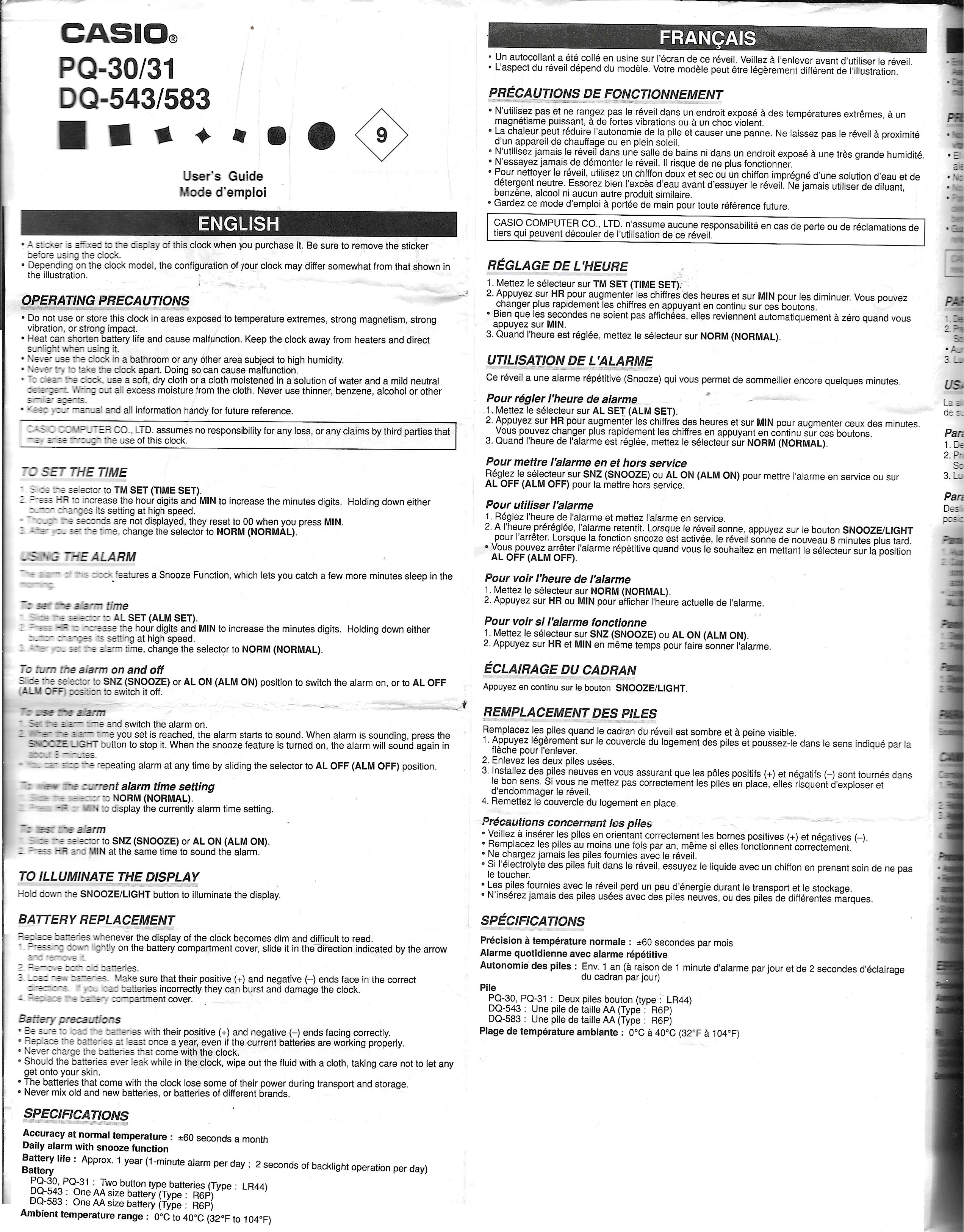 Téléchargement du manuel CASIO PB-770 en anglais (merci à Swartz de)